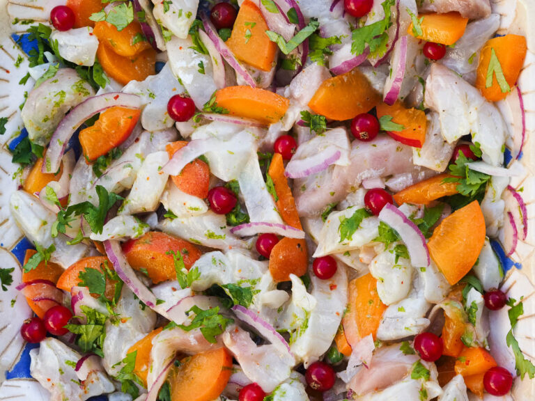 White fish ceviche with peach A fresh, original and sunny recipe from Peru