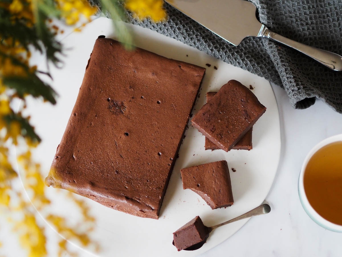 This chocolate cake is ultra soft, a bit like an intermediate between a pot of chocolate cream and the very delicious flourless birthday cake.