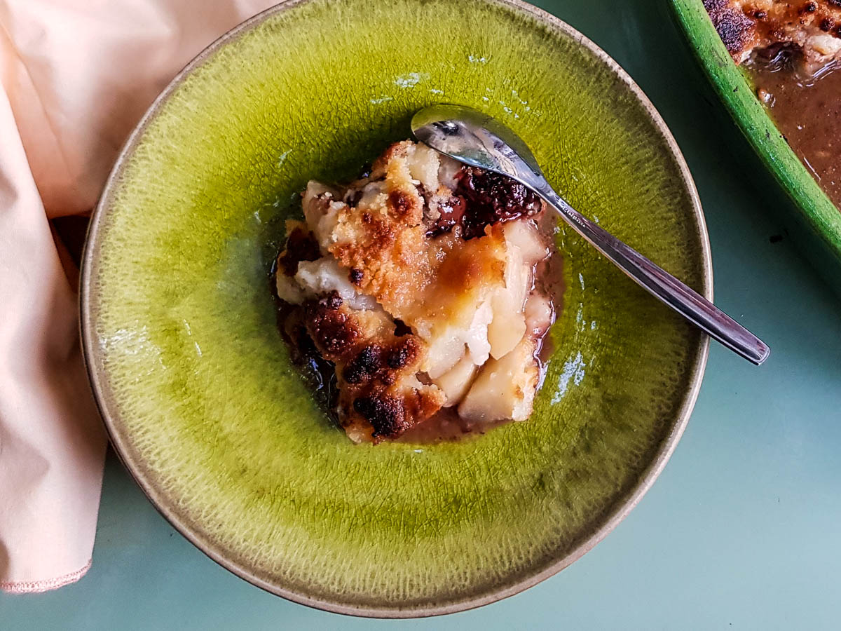 And there you have both. A crunchy-soft texture and flavors to die for. Yes, you will have understood, I am a fan of the pear-chocolate mixture. Soft pears, roundness of chocolate and, icing on the cake, crispy crumble.