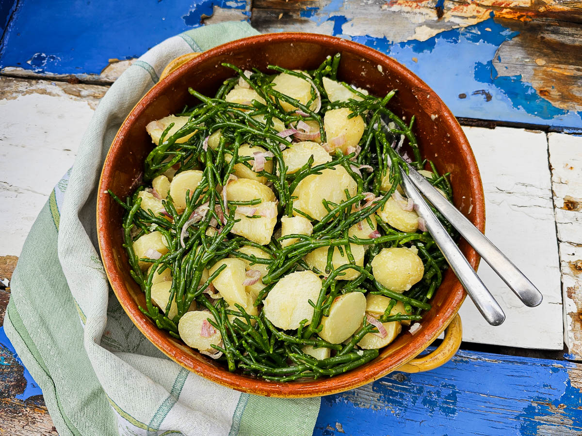 Here I offer you a very simple recipe to serve as a starter with justboiled potatoes (small new potatoes or simply potatoes cut into pieces) and chopped shallots For make samphire the star of your salad
